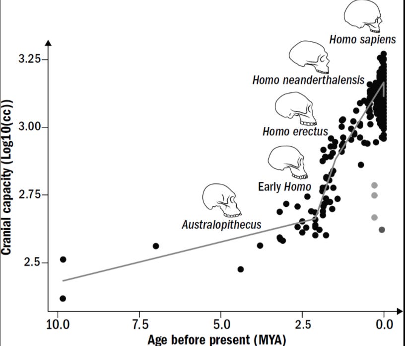 In the 80s and 90s, a collection of primatologists and evolutionary psychologists, namely Nicholas Humphrey, Frans de Waal, and Robin Dunbar, developed the social-brain hypothesis. It predicted that that the larger the neocortex in a primate the larger that primate’s social group. This correlation has been confirmed empirically and suggests something about why human brains are so large and how that growth came about.